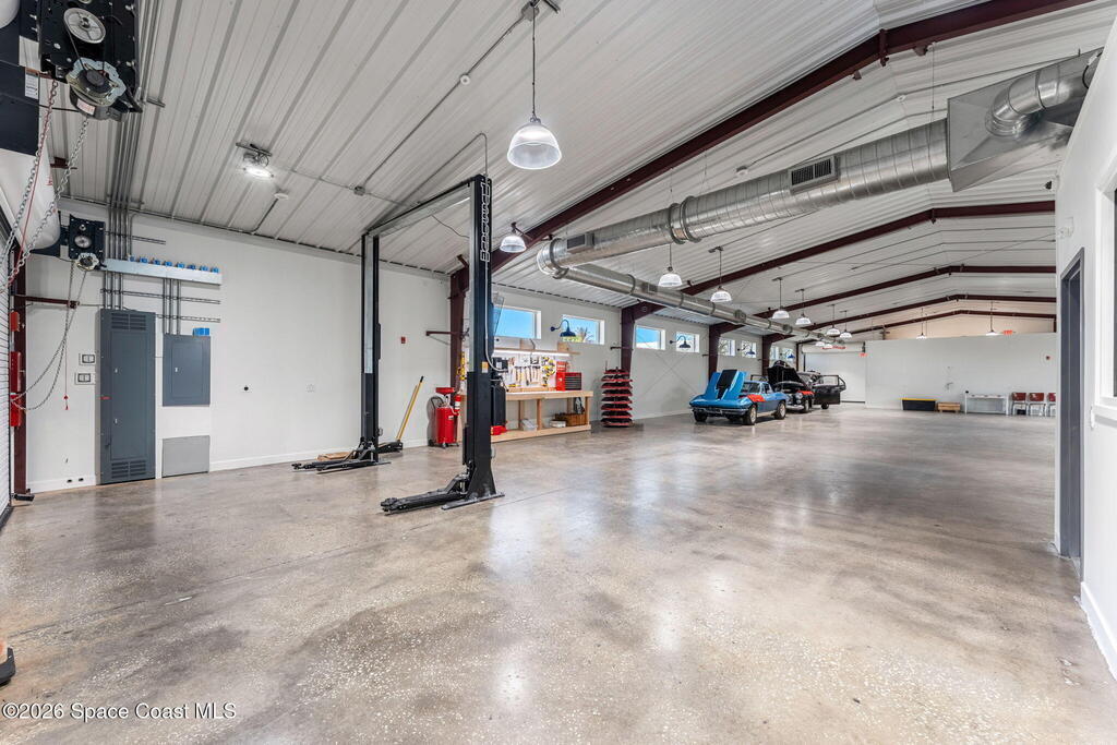 The Wanderlust Garage -- Space Coast Automotive SanctuaryPositioned near the energy of Downtown Melbourne and zoned M-1 Light Manufacturing, The Wanderlust Garage is a 5,984-square-foot architectural masterpiece created for collectors, entrepreneurs, and brands that demand more than just storage -- they demand presence. Completely reimagined from the studs and reconstructed to 2026 building and hurricane code, the property blends industrial strength with gallery-level design, delivering a turnkey facility ready for private collections, boutique automotive businesses, or experiential corporate use.From the moment you arrive, the property commands attention. A dramatic 27-foot cantilevered entry gate opens to a fully enclosed compound wrapped in a 7-foot composite privacy perimeter fence, creating a secure and exclusive environment ideal for private showings, brand launches, client events, or personal gatherings.