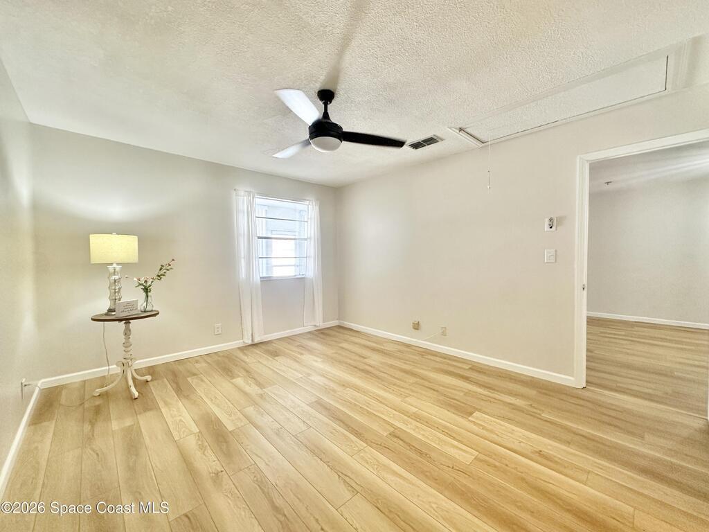 Welcome to this spacious ground-level Titusville townhome featuring a private courtyard-style entrance and an enclosed Florida room that expands usable living space and guest appeal. This 2-bedroom, 2-bath home offers 1,170 sq ft with durable wood-look flooring, an open living/dining layout, and a generous galley kitchen with ample storage. The primary suite includes a walk-in closet and the dedicated laundry/storage room offers added functionality. Major updates include a roof just 2 years old and HVAC replaced in 2020. The modest HOA fee covers cable TV, Wi-Fi, trash, lawn care, mowing, and irrigation, simplifying ownership costs. With no rental restrictions, this property is well-suited for short-term, seasonal, and long-term rental or use it as your primary residence! Pets are allowed with a 2 pet max, no size limit. Convenient to Kennedy Space Center, Indian River waterfront parks, area beaches, dining, shopping, and the iconic rocket launch viewing can be done from your yard.