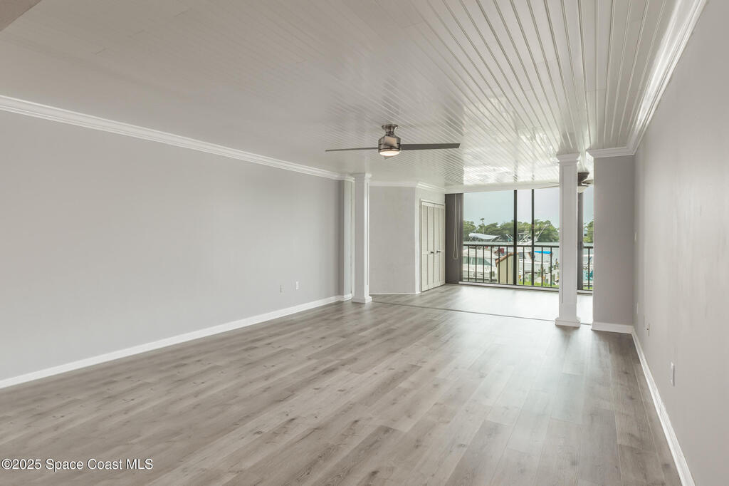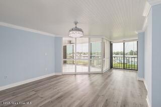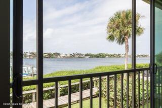 Welcome to 18 Marina Isles, where waterfront living reaches its finest. Nestled in a sought-after gated subdivision surrounded by water, this rare opportunity places you directly on the Intracoastal Waterway with panoramic views and endless sunsets over the Banana River. Enjoy daily scenes of dolphins at play, soaring birds, and the lively energy of boats, jet skis, paddleboards, and kayaks. Perfect for morning coffee or evening wine, the setting also offers front-row seats to rocket launches. This upscale condominium features an elevator, under-building parking, and a beautifully updated first-floor residence. The 2 bedroom, 2 bath layout includes an open chef's kitchen with white shaker cabinets, KitchenAid appliances, and a Carrara marble wet bar with French gray cabinetry. The primary suite showcases breathtaking water views and a designer bath with travertine shower. Impact glass windows and wood-look flooring complete this stylish. Milestone & SIRS inspections have been completed