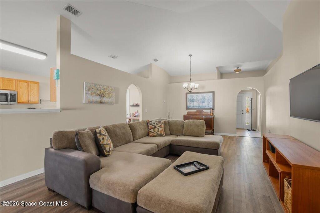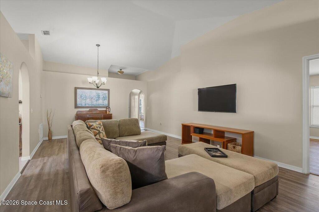 Welcome home to this BEAUTIFULLY MAINTAINED 3-bedroom, 2-bath gem offering comfort, style, and an unbeatable location. From the moment you step inside, you'll be greeted by soaring VAULTED CEILINGS that create a bright, open feel throughout the main living space--perfect for both relaxing evenings and entertaining guests.The thoughtfully designed floor plan features SPACIOUS BEDROOMS, including a private primary suite with its own full bath. The kitchen flows seamlessly into the living and dining areas, creating an inviting space for everyday living and gatherings.Step outside and fall in love with the LARGE LANAI--ideal for morning coffee, outdoor dining, or hosting friends year-round. The fully FENCED BACKYARD provides added privacy and plenty of room for pets, play, or gardening. With a BRAND-NEW ROOF, you can move in with peace of mind knowing a major upgrade has already been completed. Located just minutes from the vibrant shops and waterfront dining of EGAD. New sod coming soon