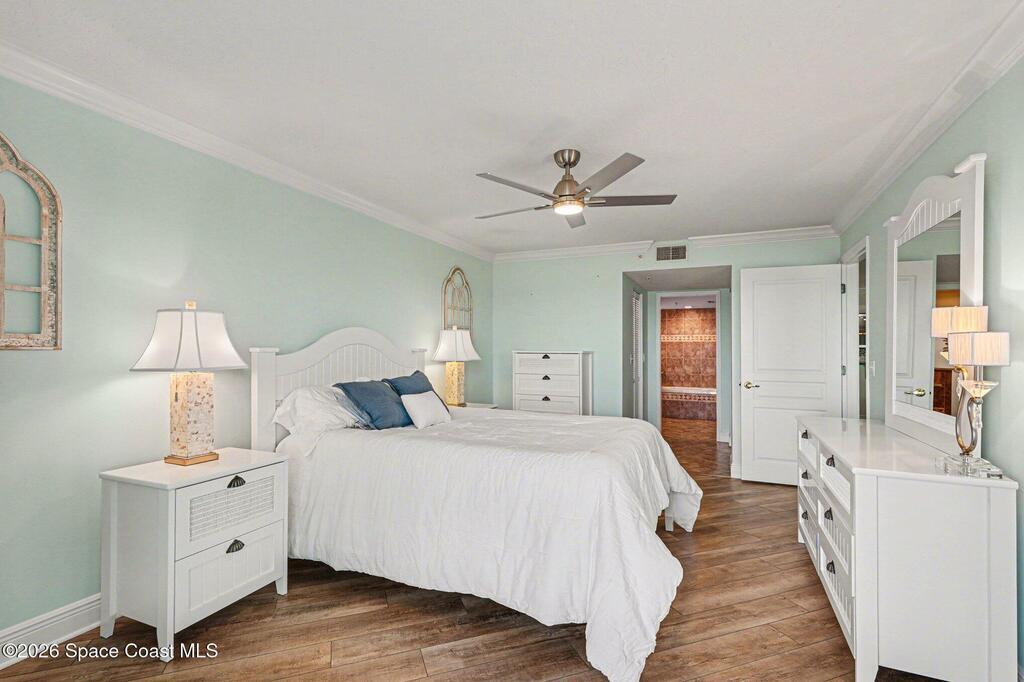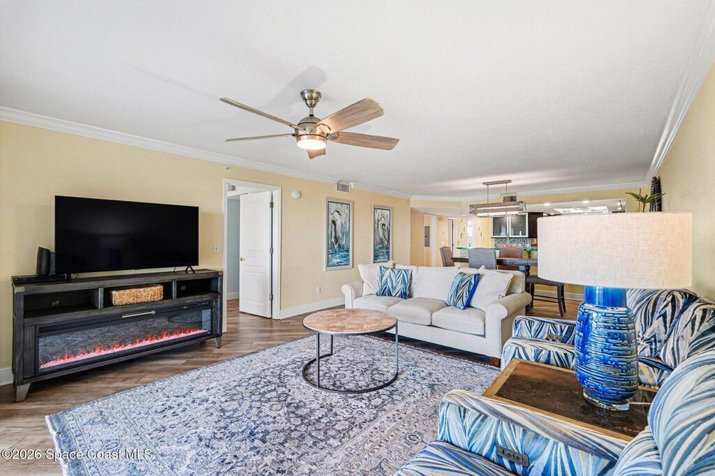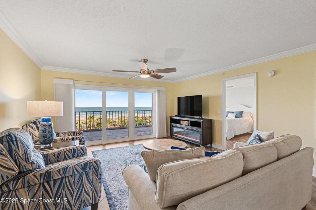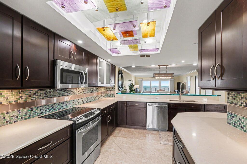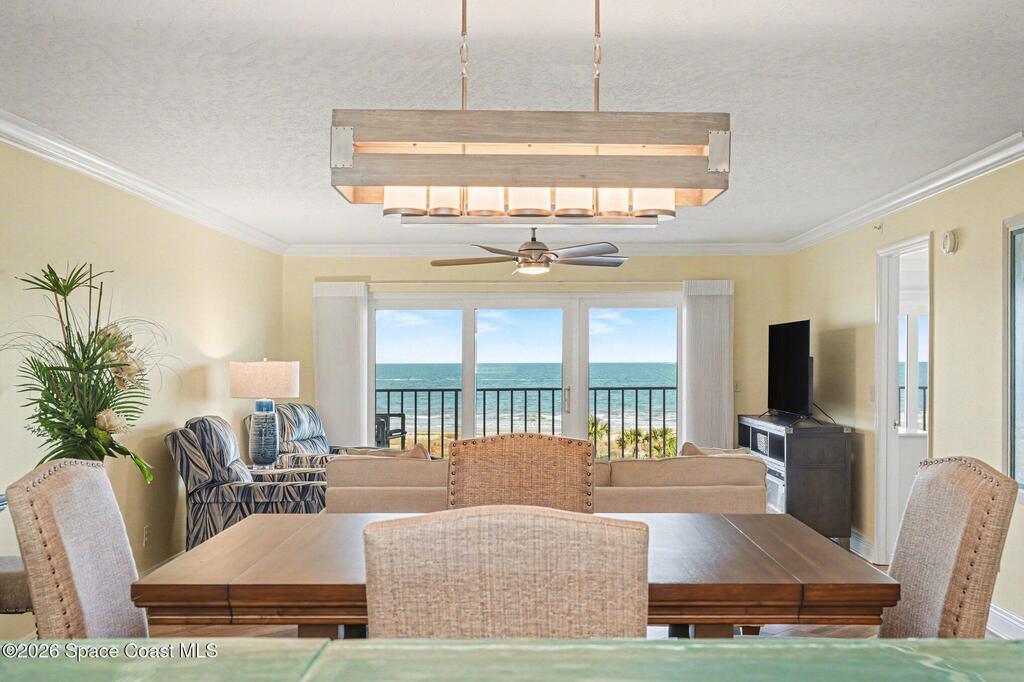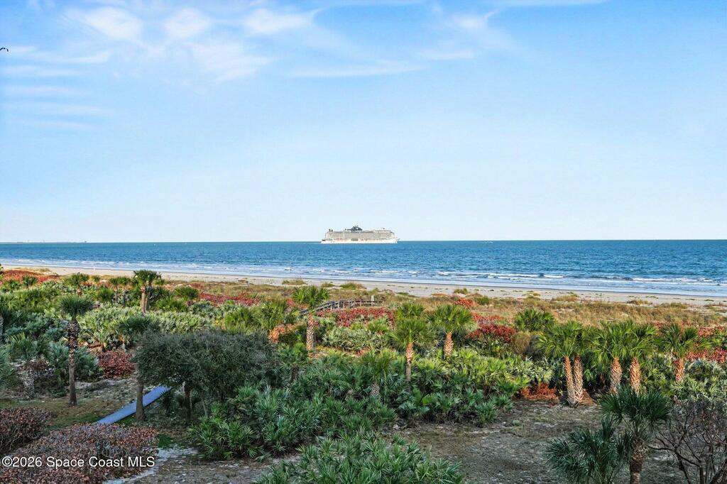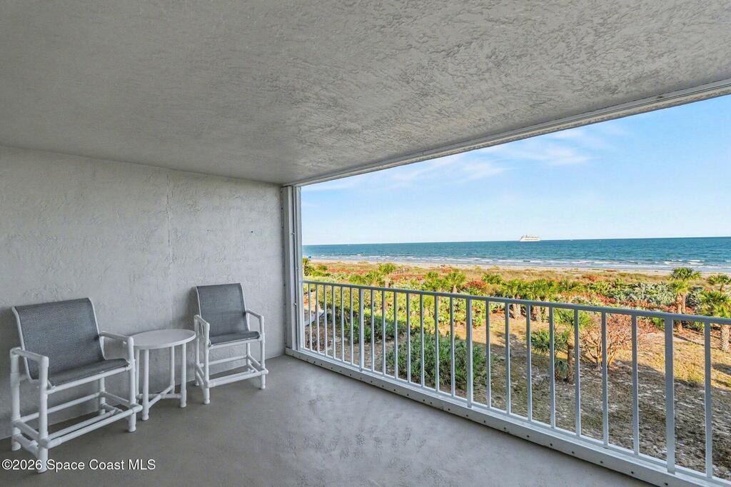 Oceanfront, Modern, Luxurious, Updated, 4th Floor, Furnished 2/2 Condo w/ Private, Oversize 1 Car Garage in Ocean Oaks. At the end of Ridgewood, so no thru traffic, this Gated, Most Desirable Oceanfront Community in all of Brevard opens to Lush Landscaping, Winding Ocean Paths, Private Beach Access, Heated Pool, Spa, Gym w/ Sauna, Tennis/Pickle ball Courts, Car Wash Area, & Offers a Secure Lobby. Lovingly updated w/ Crown Molding, All Tile Floors, Custom Kitchen w/Stainless Appliances, Luxury Counters, Backsplash, & Custom Breakfast Bar. Sitting Room off of Kitchen. Large Balcony has 2 sets of Impact Sliders, Incredible Ocean Views & a Storage Room. The Main suite offers Spectacular Ocean Views, His/Hers Closets, Custom Vanity w/ Add'l Built In Storage, Large Tiled Shower, & Jetted Tub. Guest Bdrm w/ Gorgeous Ensuite Bath & Blt in Office. Amazing location to watch the ROCKET launches & cruise ships! Convenient to Jetty Park, the Pier, KSC, NASA, shopping/dining, & 45 Min to Orlando.