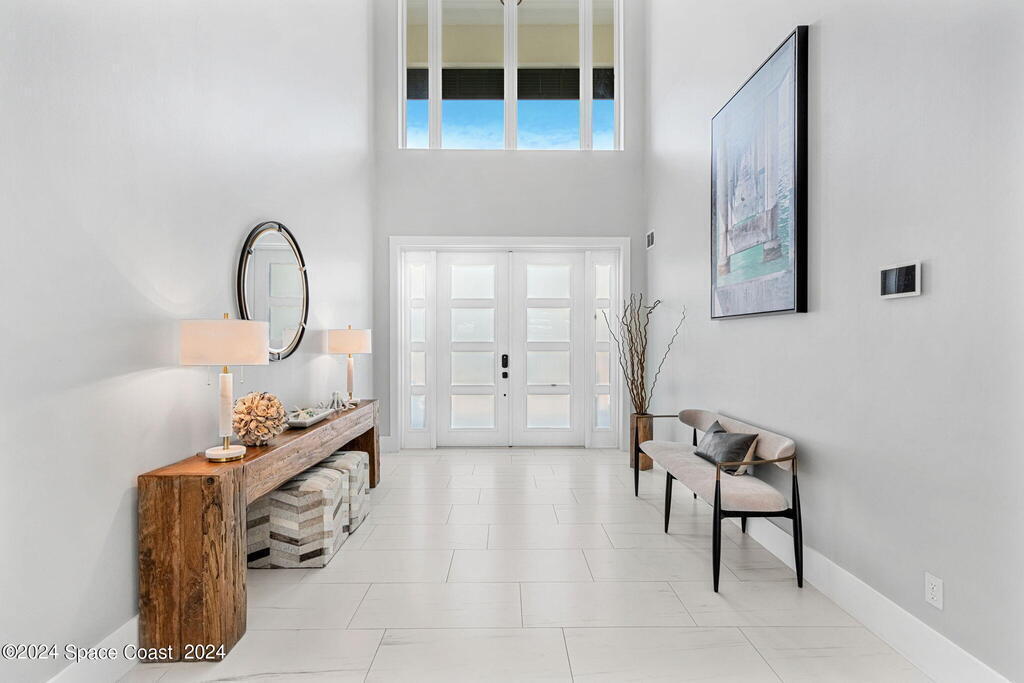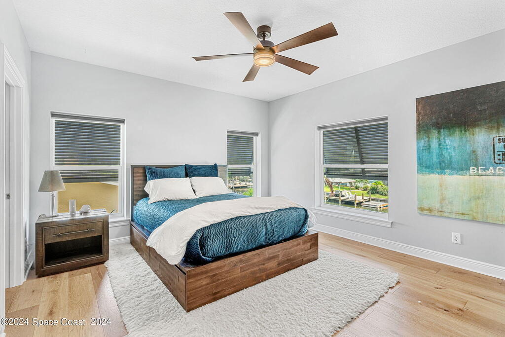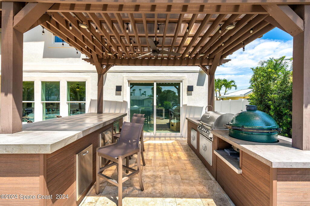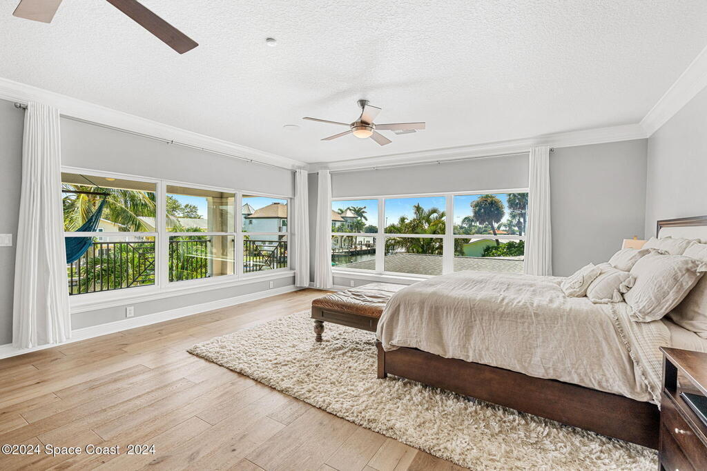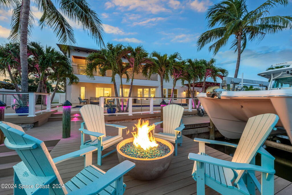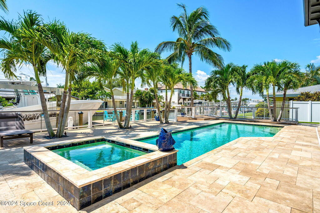 This stunning canalfront 6-bed, 6 1/2-bath home epitomizes luxury and comfort. Picture yourself spending days by the sparkling pool, complemented by a summer kitchen that's perfect for hosting unforgettable family gatherings--whether it's cozying up around the fireplaces or enjoying individual activities. The interior primary bedroom is a true sanctuary, offering breathtaking views in every direction, including the Banana River and a peek-a-boo glimpse of the Indian River. Bathed in natural light, this home radiates warmth and elegance, while its solid construction--concrete poured on pilings, impact-rated openings, and a natural gas whole house generator--ensures peace of mind and security during any storm