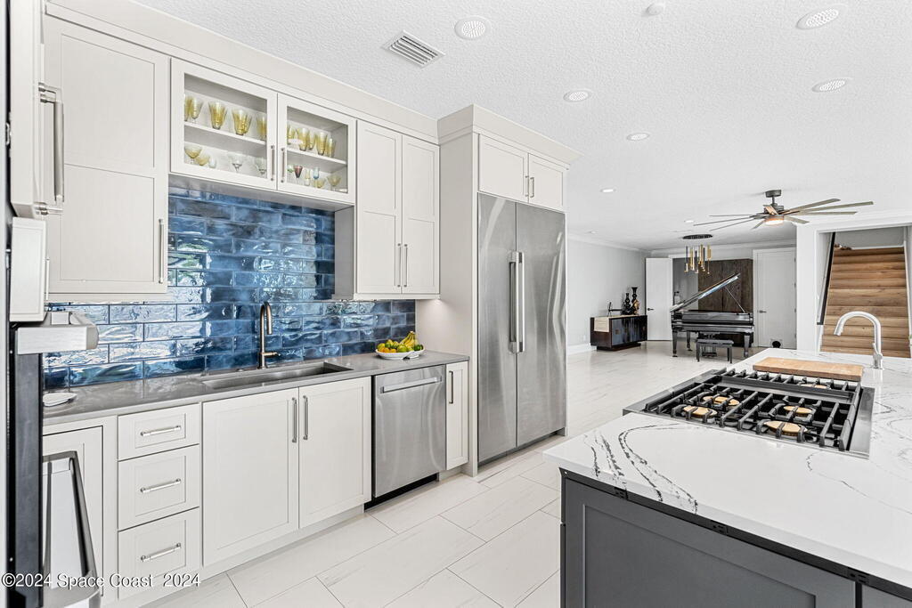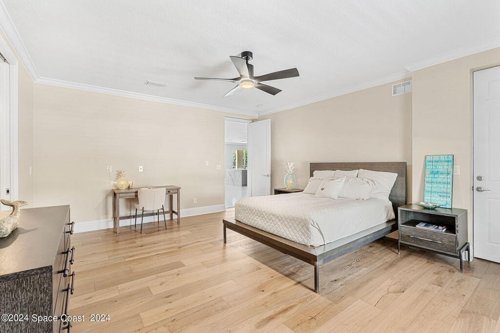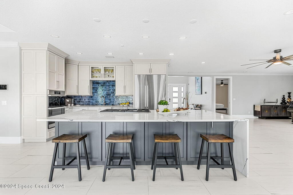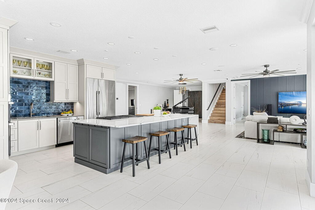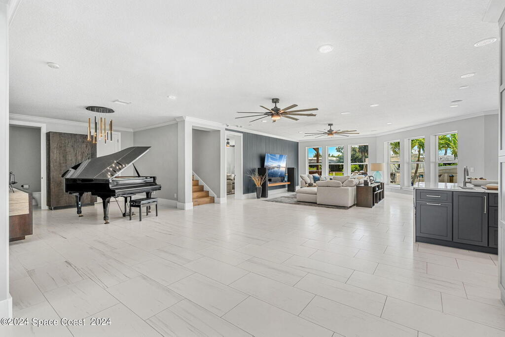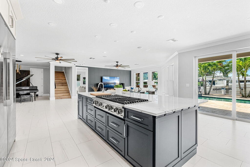 This stunning canalfront 6-bed, 6 1/2-bath home epitomizes luxury and comfort. Picture yourself spending days by the sparkling pool, complemented by a summer kitchen that's perfect for hosting unforgettable family gatherings--whether it's cozying up around the fireplaces or enjoying individual activities. The interior primary bedroom is a true sanctuary, offering breathtaking views in every direction, including the Banana River and a peek-a-boo glimpse of the Indian River. Bathed in natural light, this home radiates warmth and elegance, while its solid construction--concrete poured on pilings, impact-rated openings, and a natural gas whole house generator--ensures peace of mind and security during any storm