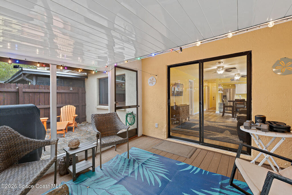 Discover your dream beachside getaway in this 2-bed/2-bath villa located in the highly sought-after Ocean Woods gated community only a short stroll from the beach! The single-story layout features abundant natural light, renovated baths, updated kitchen with concrete counters, and new wood-look laminate throughout. The serene outdoor space has a private screened paver patio and fenced backyard surrounded by lush landscaping. In-unit laundry, an attached 1-car garage to store your beach gear, and optional furnishings make this home move-in ready! A 2023 HVAC adds piece of mind. Enjoy exclusive amenities including 2 pools, a sauna, clubhouse, basketball, racquet, tennis, and shuffleboard, all in a pet-friendly community! Located on the closest street to the ocean, minutes to the private beach access, where you can relax in the sand watching cruise ships and rocket launches. Located in the heart of Cape Canaveral, this home is a perfect investment opportunity or your own coastal retreat!
