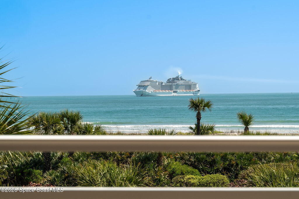 DIRECT OCEANFRONT SE CORNER UNIT in the exclusive, gated Shorewood Condominiums--where tranquility meets breathtaking views. This Cape Canaveral gem offers a front-row seat to cruise ships gliding by, rocket launches lighting up the sky, & all the magic of beachfront living. The spacious open floor plan features an oversized balcony perfect for soaking in those panoramic ocean vistas. You'll also enjoy the convenience of a private, oversized garage & the peace of mind provided by hurricane shutters. Resort-style amenities await, including a massive heated pool, 1 tennis courts, 2 pickleball courts, a relaxing hot whirlpool, a fully equipped exercise center, shuffleboard, a sauna, and a welcoming clubhouse. Plus, with two private beach access points, you're just steps away from the sand and surf. Located near the Space Center and Port Canaveral, this property is a rare find for those seeking luxury, privacy, and a vibrant coastal lifestyle.