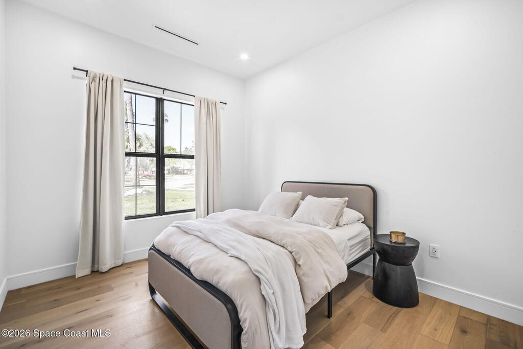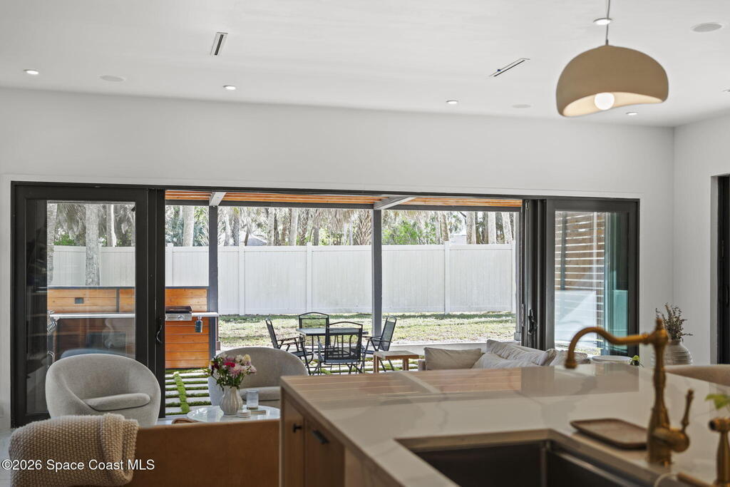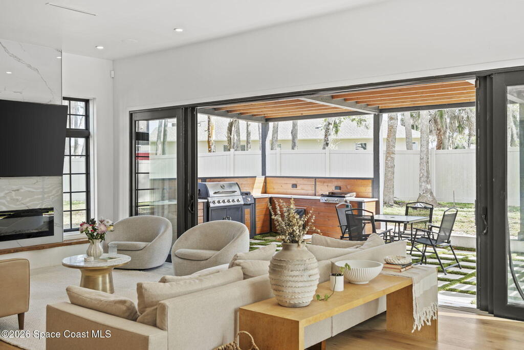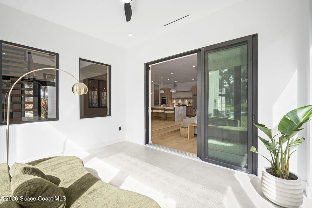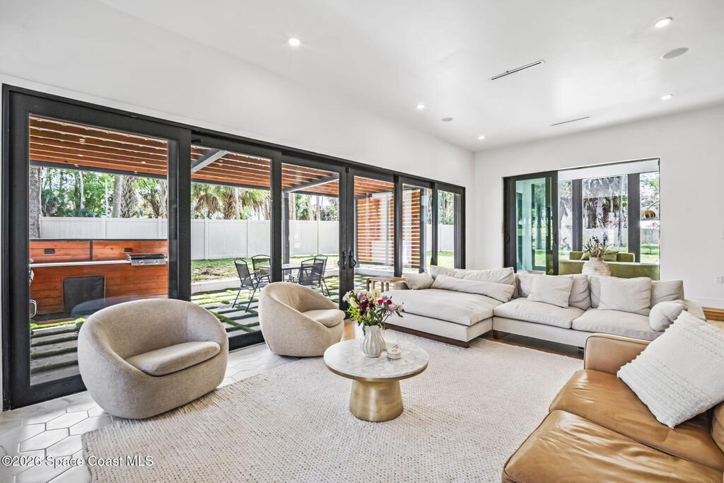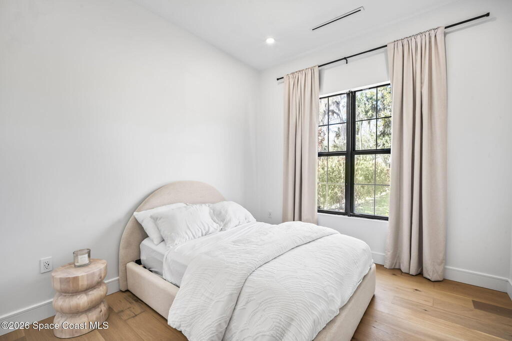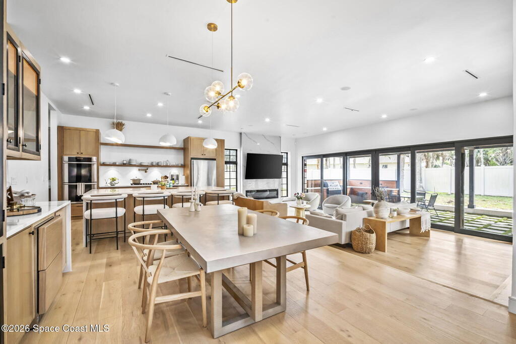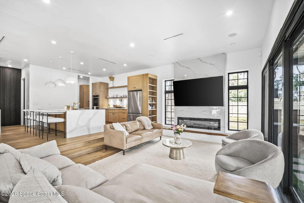 Beneath a canopy of mature oaks, a modern two-story home quietly sets itself apart.Clean architectural lines, black framed windows, and natural materials give the home a calm confidence before you ever step inside. It's the kind of design that doesn't try too hard... it just works.Inside, the space opens immediately. Wide plank white oak floors run throughout the main living areas while a wall of sliding glass stretches across the back of the home, drawing natural light deep into the interior and connecting the living space to the outdoors.The architecture favors openness and simplicity. Living, dining, and kitchen spaces flow naturally together, creating a layout that feels effortless whether it's a quiet evening at home or a full house on the weekend.