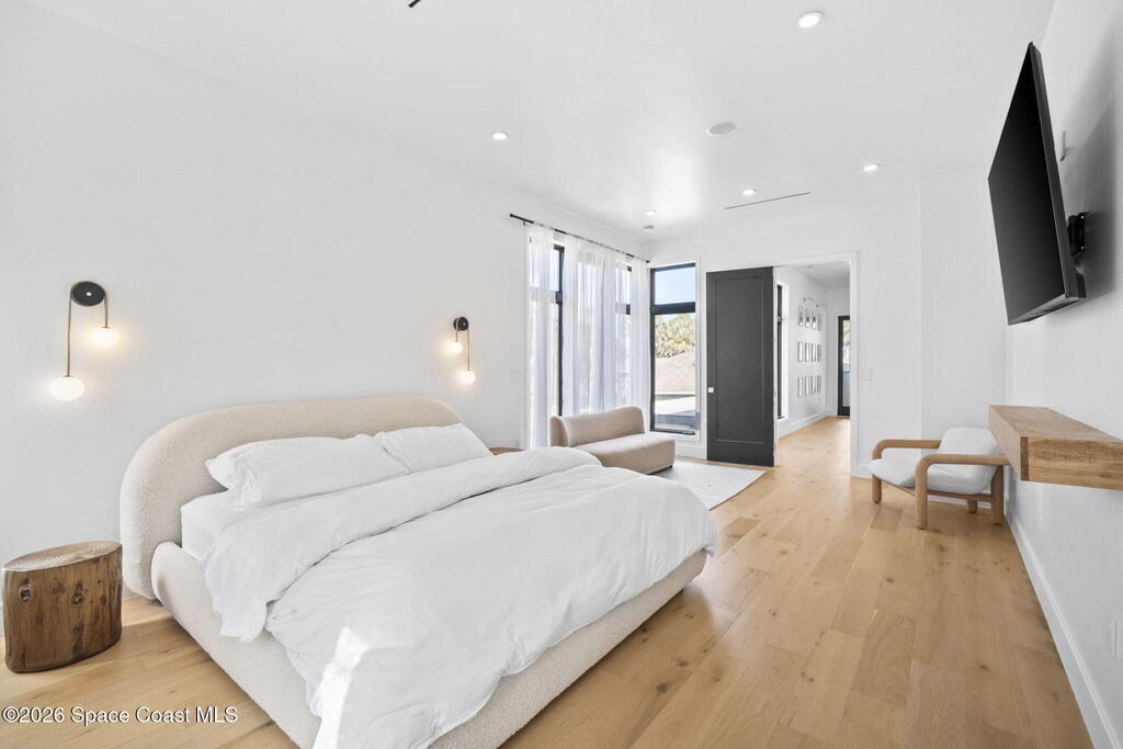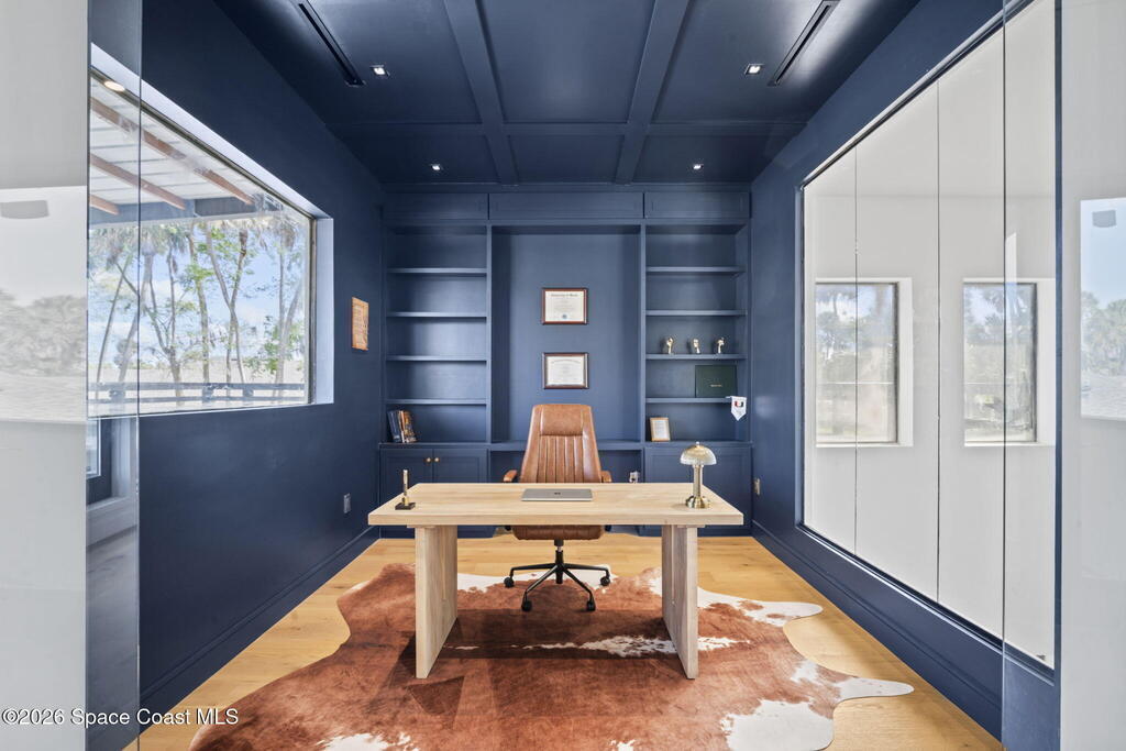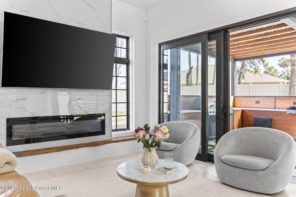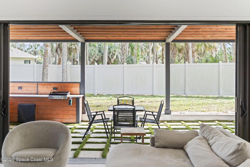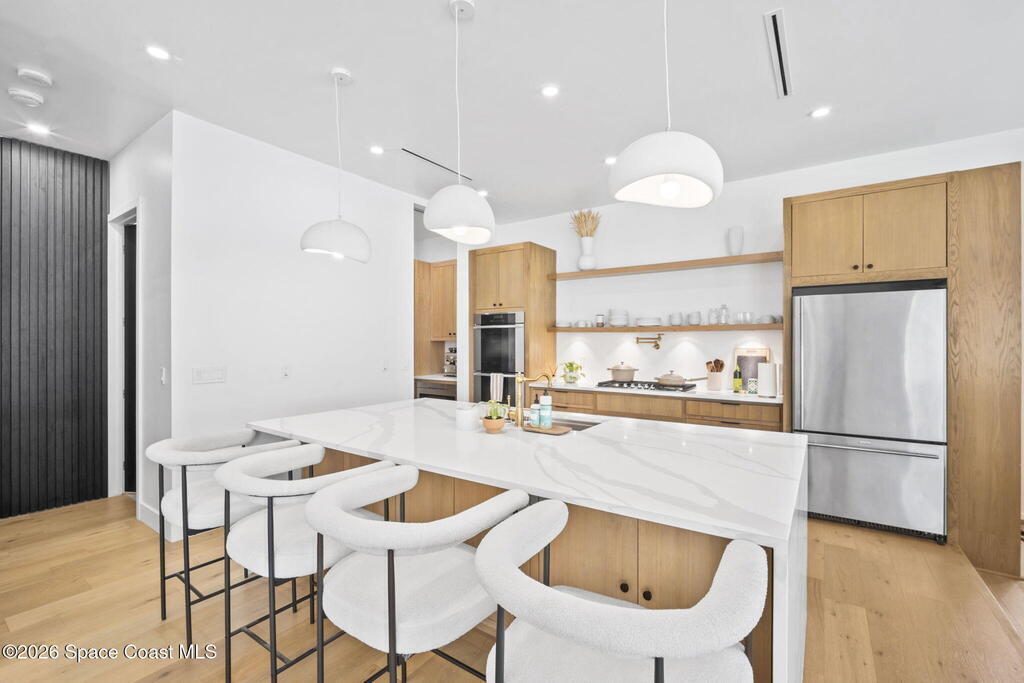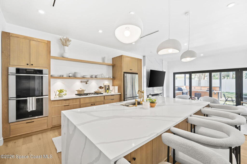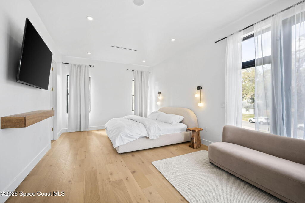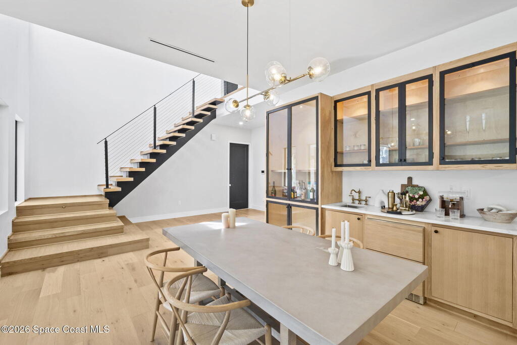 Beneath a canopy of mature oaks, a modern two-story home quietly sets itself apart.Clean architectural lines, black framed windows, and natural materials give the home a calm confidence before you ever step inside. It's the kind of design that doesn't try too hard... it just works.Inside, the space opens immediately. Wide plank white oak floors run throughout the main living areas while a wall of sliding glass stretches across the back of the home, drawing natural light deep into the interior and connecting the living space to the outdoors.The architecture favors openness and simplicity. Living, dining, and kitchen spaces flow naturally together, creating a layout that feels effortless whether it's a quiet evening at home or a full house on the weekend.