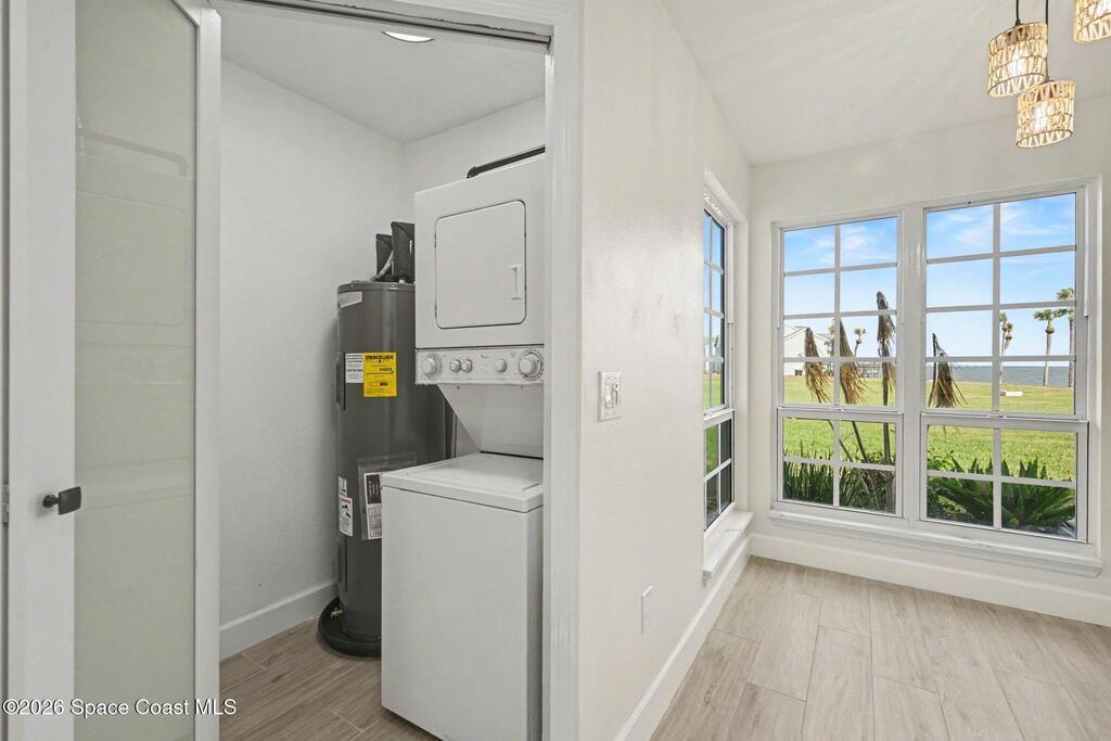 Equipment/Appliances: Dishwasher, Disposal, Electric Range, Electric Water Heater, Ice Maker, Microwave, Refrigerator and Washer/Dryer Stacked