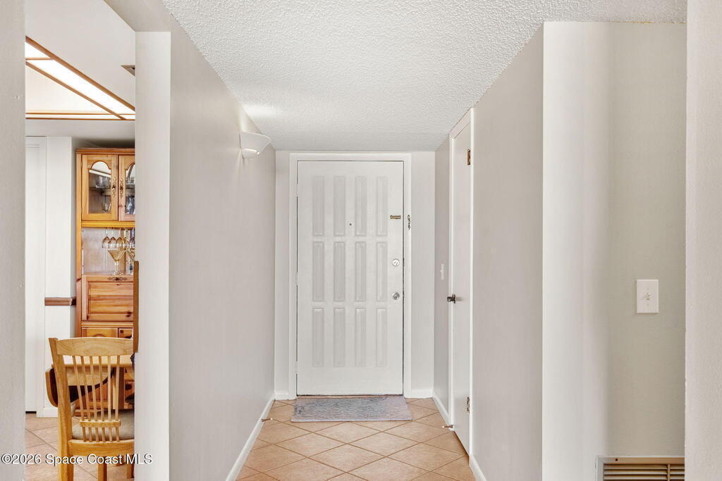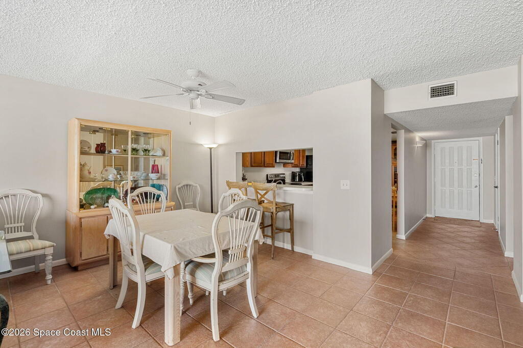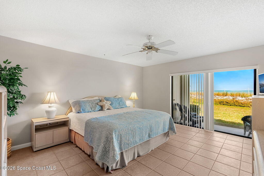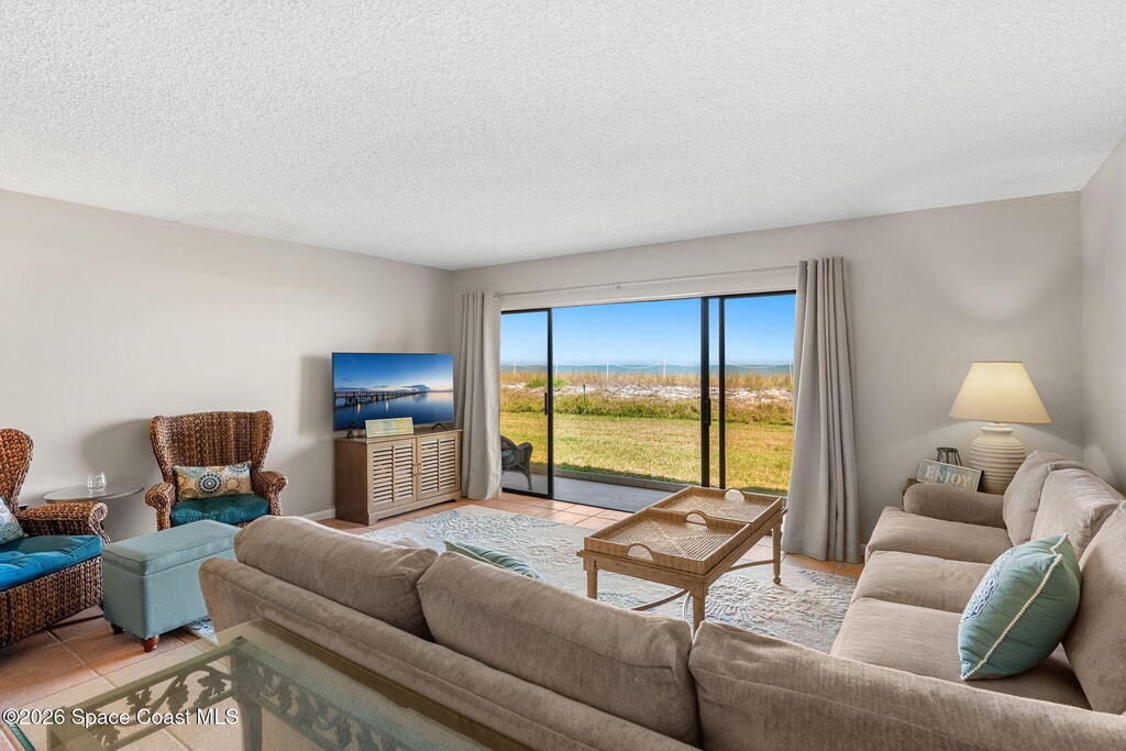 Experience oceanfront living in Satellite Beach, where breathtaking sunrises, surfing, and sandcastles are part of everyday life. 2 bedroom, 2 bath condo features a spacious living area with triple sliding glass doors showcasing beautiful views of the dunes and Atlantic Ocean. Enjoy the ease of first-floor living, no elevators or stairs needed! Just steps from the heated community pool & private beach access. Relax on the covered patio overlooking peaceful green space. The well-maintained interior offers tile floors, big kitchen, nice appliances, and a wide living area with room for friends to gather. Ideally located just south of Pineda Cswy. for quick access to I-95, 1 hour to Orlando Intl. Airport and 20 mins to Melbourne Airport. Shopping, dining, and coffee cafes are nearby. Affordable HOA fee covers exterior maintenance, and water. Structural report and building updates completed. NO CURRENT ASSESSMENTS! Includes washer & dryer, storm shutters. Partially furnished. Move right in!