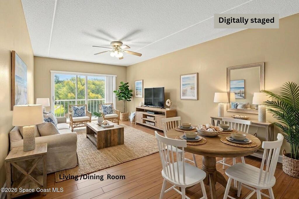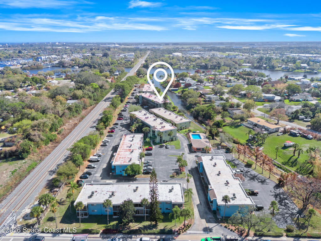 WOW ! Waterfront under 160k Really a light-filled second-floor condo where peaceful river views and Florida wildlife create a truly relaxing setting. From your private balcony, enjoy the sights and sounds of the water, and a variety of coastal birds that gather along the shoreline. The community sits on navigable waterways that lead directly to the Indian River Lagoon, making it a wonderful spot for kayaking, fishing, birdwatching, and soaking in the natural beauty right outside your door. Inside, the condo features a bright, spacious open-concept living area that maximizes the water views. The large living-dining space flows seamlessly to the balcony, creating an airy, inviting environment perfect for relaxing or entertaining. Laminate flooring runs throughout the home, giving the space a clean, cohesive feel while keeping maintenance simple. along with the convenience of an in-unit laundry area. Located on the second floor, this unit is positioned close to both