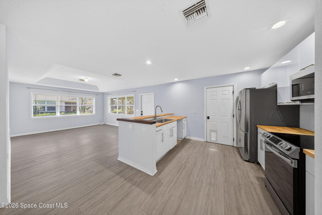 Enjoy easy, low-maintenance living in this well-maintained 2-bedroom, 2-bath home offering 1,286 sq ft of comfortable living space. Built in 2006 and thoughtfully updated, with a new roof & A/C in 2023, the home features a bright, open layout with elegant tray ceilings and tile and vinyl flooring throughout. The kitchen serves as the heart of the home with butcher block countertops, newer appliances, and modern cabinetry, flowing seamlessly into the dining and living areas for easy everyday living and entertaining.The spacious primary suite offers generous natural light and a large en-suite bathroom with dual sinks, a soaking tub, and a separate shower. A second bedroom and full bathroom provide flexible space for guests, a home office, or hobbies.Enjoy the covered and screened front entry, perfect for morning coffee or relaxing evenings. The home backs directly to a peaceful preserve, offering added privacy and natural views. Convenient location near shopping, dining, & beaches!