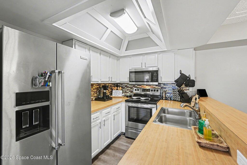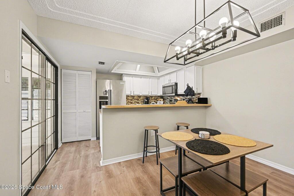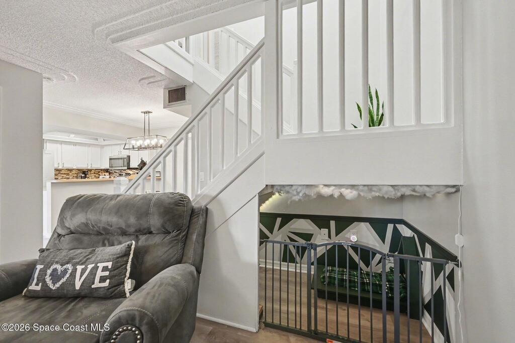 Beautifully renovated townhome with many upgrades and features throughout. The bedrooms have high vaulted ceilings for a much larger feel. Both upstairs bathrooms have tub/showers, and the downstairs half bath has a backlit mirror adding a touch of sophistication & under stairs storage. Stainless steel appliances, a raised breakfast bar with sliders to an enclosed porch from the kitchen and family room are perfect for entertaining! The courtyard is fully fenced and ready for your outdoor living space with well water for watering your potted plants in the courtyard. The family room features a wood burning fireplace and a nook under the stairs for pets or a reading space for little ones. Luxury vinyl floors throughout with carpet in both bedrooms which both have sliders to the balcony. The primary closet has been upgraded with lighting and plenty of room for shoes and clothes. Even a movie screen and room darkening drapes for movie night. Enjoy a swim in the pool. Laundry space upstairs.