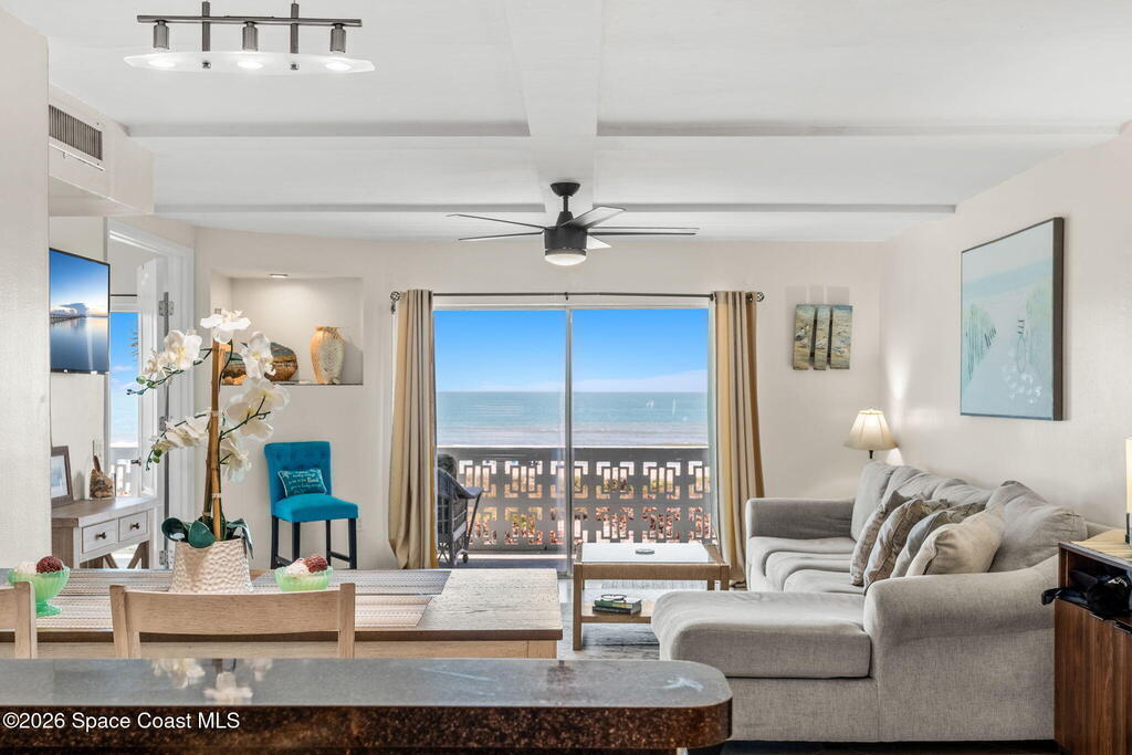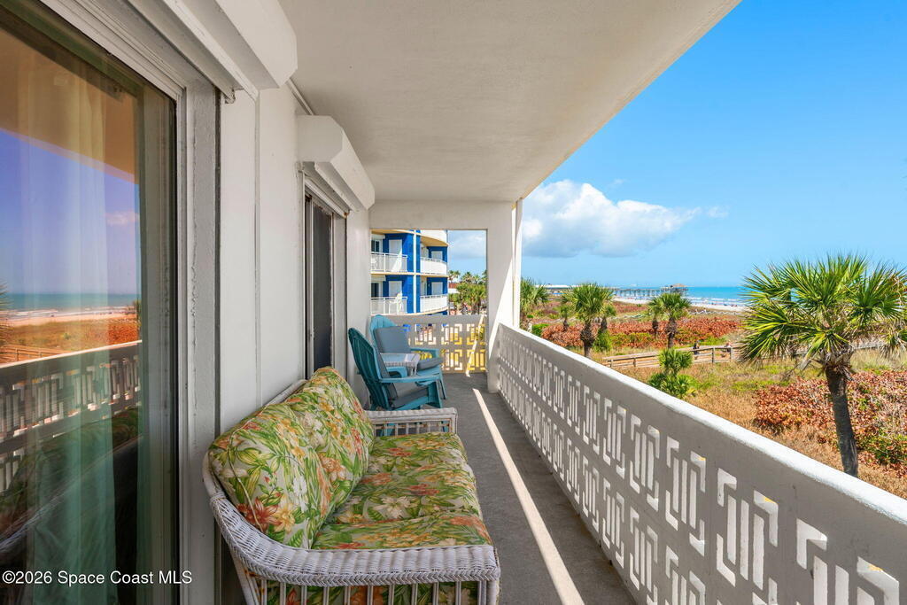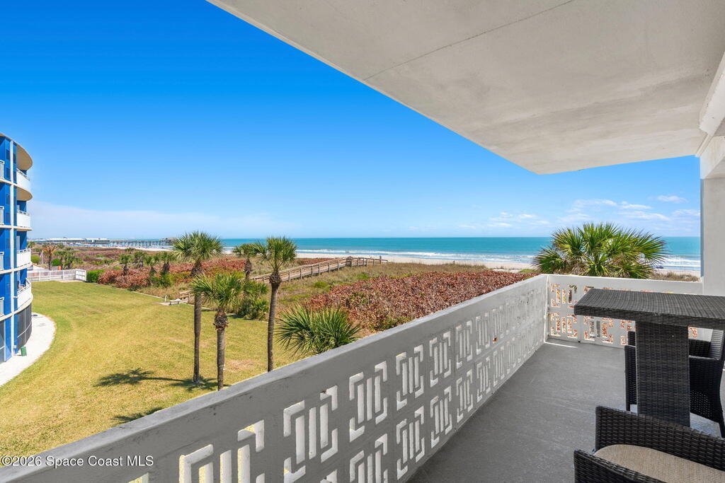Experience beachfront living at its finest in this stunning PENTHOUSE CORNER condo with direct OCEAN views from every room. Perched above the shoreline, the fully Furnished home features 2 bedrooms and 2 baths and a sweeping WRAP-AROUND balcony that invites sunrise coffee, sunset cocktails and incredible ROCKET LAUNCHES while you listen to the surf.Inside, bright, open living spaces flow toward expansive glass and coastal breezes--each room framed by panoramic Atlantic vistas. The primary suite enjoys private views and easy access to the balcony; the second bedroom is equally airy and light-filled, perfect for guests or a home office.Step outside to resort-style community amenities: a sparkling pool and direct beach access that puts sand and surf just moments away. Located just one block from the world-famous Cocoa Beach Pier, you're minutes from dining, shopping, and seaside entertainment.This penthouse is an ideal primary residence, vacation retreat, or investment opportunity.
