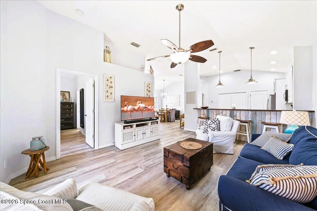 INDIALANTIC BEACHSIDE TURN-KEY RETREAT - FULLY FURNISHED AND JUST STEPS FROM THE BEACH. Located in the highly desirable GATED COMMUNITY of Oceanside Village, this beautifully updated coastal home offers effortless beachside living. The spacious interior features vaulted ceilings, split bedrooms for privacy, and high-grade Stainmaster luxury vinyl flooring throughout. The custom kitchen includes quartz countertops, stainless steel appliances, and a breakfast bar perfect for morning coffee. Relax on the private screened porch while enjoying ocean breezes. Major updates provide peace of mind, including new A/C (2022), exterior paint (2022), gas water heater (2021), hurricane shutters, and roof replaced in 2018. Conveniently located to shopping, restaurants, parks, and local attractions. HOA dues cover exterior maintenance and paint, landscaping, insurance, roof reserves, and maintenance of the community amenities including a pool, clubhouse, tennis and basketball courts.