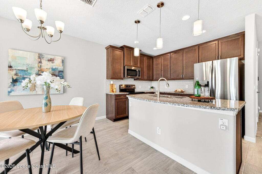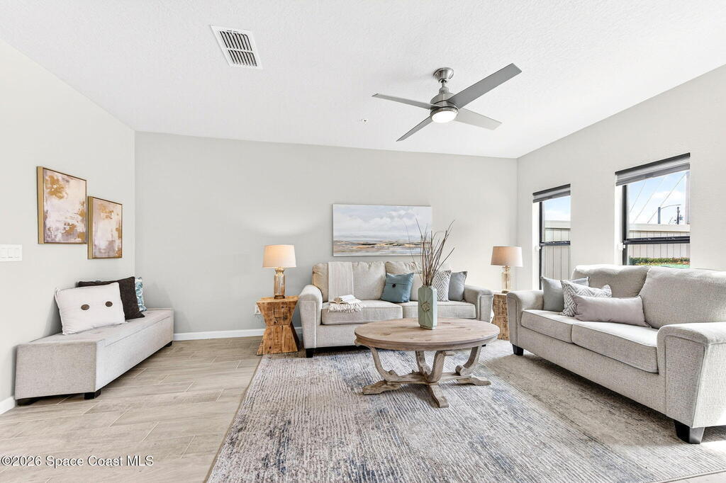 Welcome to Meadow Pointe modern living in a prime central location! BUILT IN 2020, this MOVE IN READY 3 bedroom, 2.5 bath condo with a 1 car garage has been freshly painted and professionally cleaned. The open kitchen features 42'' cabinets, stainless steel appliances, subway tile backsplash, and a spacious butler's pantry. Neutral tile flooring spans the main living areas, with comfortable carpet upstairs. The primary suite offers an ensuite bath with granite counters, dual vanities, and a large walk-in closet. Enjoy outdoor living with a charming front patio and an OVERSIZED paver back patio ideal for entertaining or relaxing. The ALL INCLUSIVE HOA covers cable, internet, lawn care/landscaping, community pool, master insurance policy, and more. Conveniently located near I-95, US-1, shopping, dining, and everyday essentials, with beaches and Patrick Space Force Base just 20 minutes away. Schedule your showing today!
