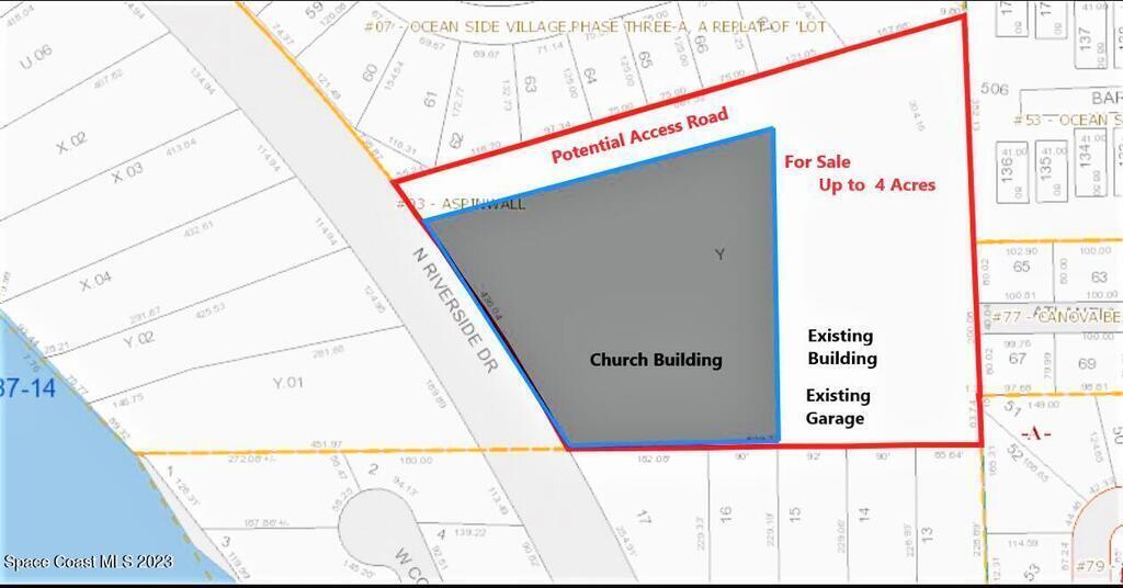 Great Beachside development site! Buildable land off Riverside Dr. in Unicorporated Brevard. Undivided Acreage along the back east section and room for a potential road or lane on the north side for access via Riverside Dr. The main acreage site sits behind the Riverside Baptist Church. Surrounded by residential neighborhoods. Currently zoned as institutional use can be rezoned to Single Family Residential as per Brevard County. Buyer to perform all due diligence. Please be discreet as the church actively uses the property.