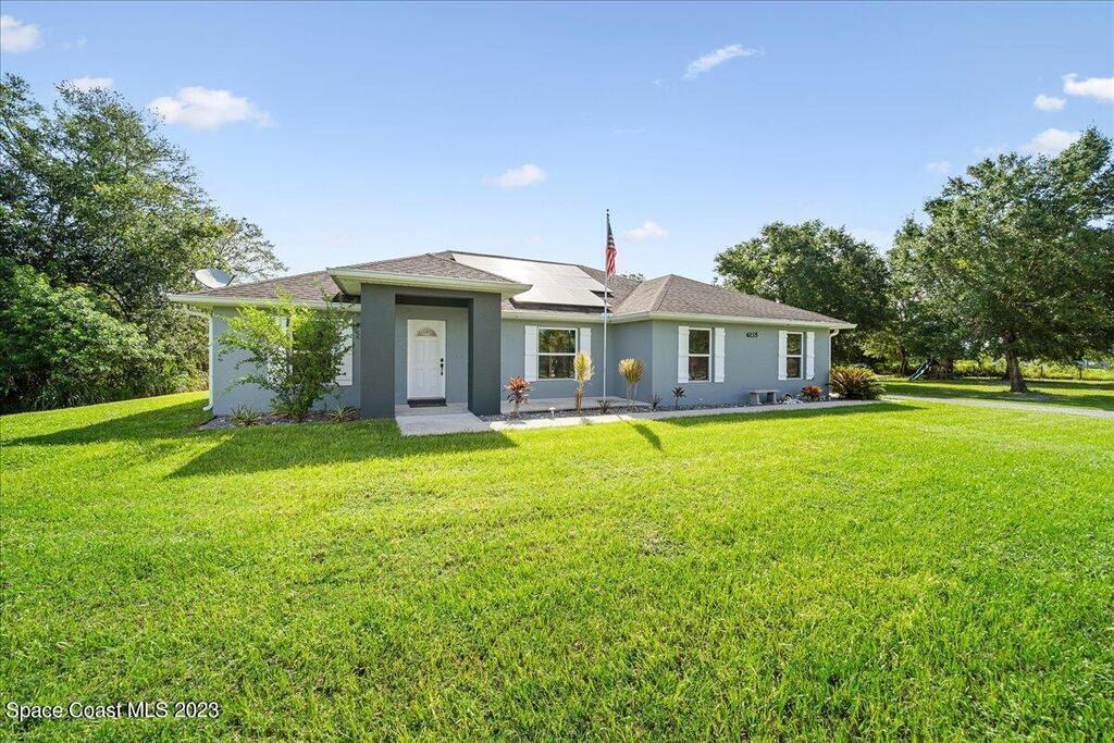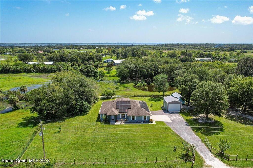 Well maintained 4 bedroom 2 bath concrete block home on corner lot w/ private pond on 2.5 acres in Mims. This property has much to offer w/ wide open floor plan, vaulted ceiling, laminate flooring, tile and carpet (carpet is only in the bedrooms), large eat in kitchen w/ custom wooden cabinetry - granite counted tops - breakfast bar, spacious master suite w/ double sinks & tiled walk-in shower. Newly added 20 x 20 x 16 detached garage!! Newly added 12 x 28 outhouse with AC & water, this is perfect for an at home office! This property is just minutes way from Scottsmoor Landing w/ a public boat ramp to the Indian River.