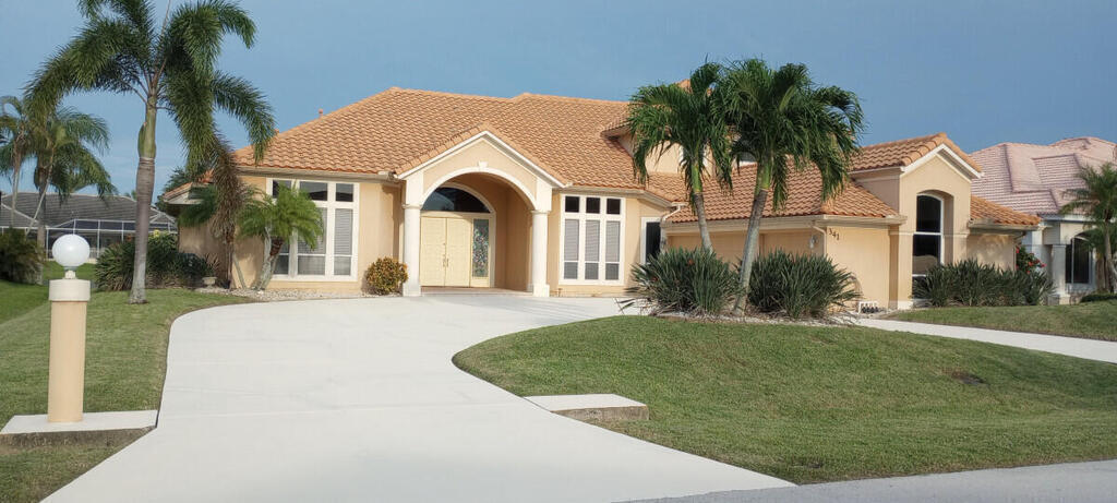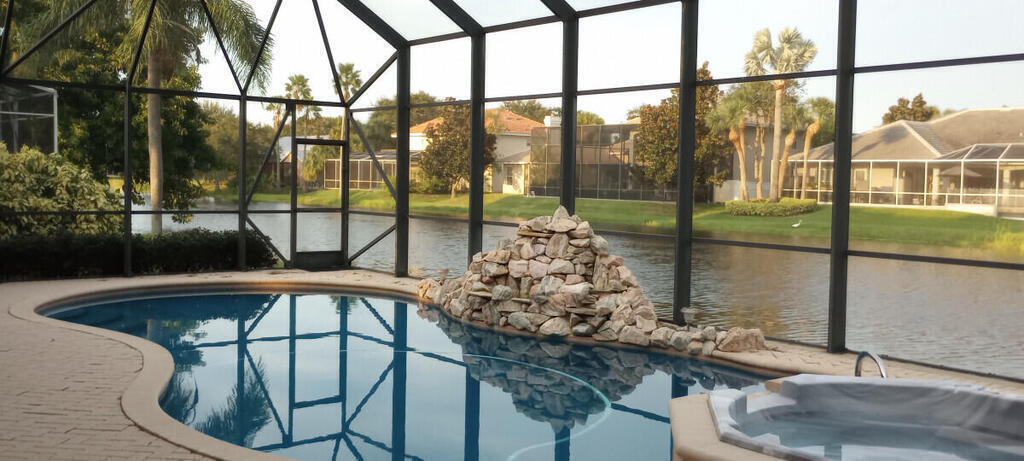 Realize your dream at ''Tortoise Island'' in this 5 bedroom with a large study and 3 car garage. Exceptional Lake Front Pool Home! 3,334 sq. ft. of modern living space and a lot size of 16,553 sq. ft. Large screened lanai, swim around in your pool or watch the wildlife. The common area in front of the home is great for visitors with a large circle drive. Upon entering the home, you are greeted by a foyer that instantly captures your attention with its soaring ceilings. The open-concept layout seamlessly connects the various living spaces, creating an effortless flow throughout the residence. The spacious kitchen wraps around to the dining and family room area fireplace offers the perfect start your life of leisure here! Enjoy the view at the inviting upstairs balcony on back of home